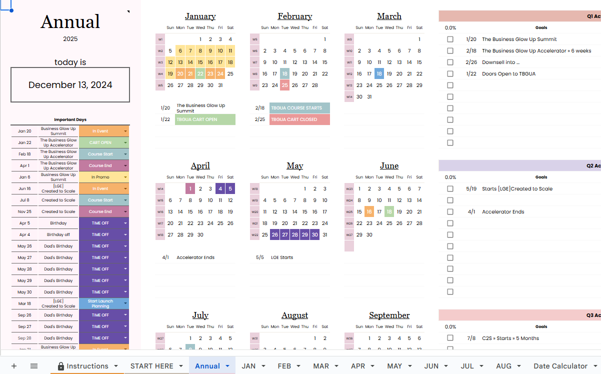 Introducing the Yearly Planner, your ultimate tool for effortless business planning and organization. Easily map out all your launches, lead-gen events, and key projects for the year, ensuring seamless execution and helping you hit your goals with confidence and clarity.